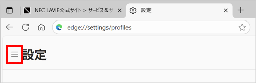 Microsoft Edgeを起動し、「」(設定など)をクリックして、表示された一覧から「設定」をクリックします。