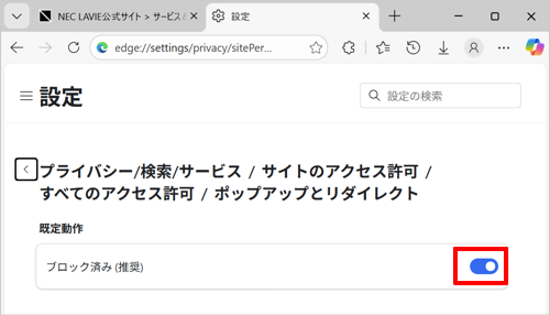Windows 11のMicrosoft Edgeでポップアップブロックを有効/無効に設定する方法