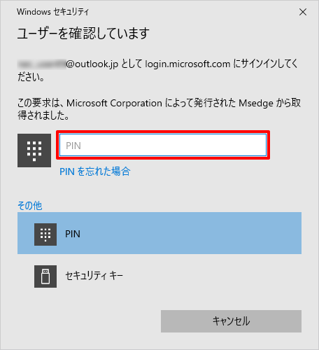 パソコンと登録していない、またはPINの設定をしていない場合は、下記の画面が表示されます。