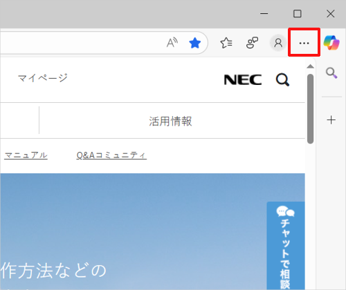 Microsoft Edgeを起動し、「」(設定など)をクリックします。