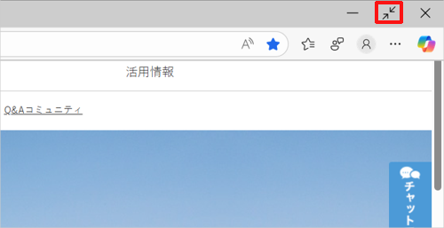 全画面表示を終了する場合(元のウィンドウ表示に戻す場合)は、マウスポインターを画面上部に合わせると画面右上に表示される「」(全画面表示の終了)をクリックします。