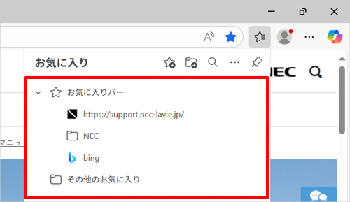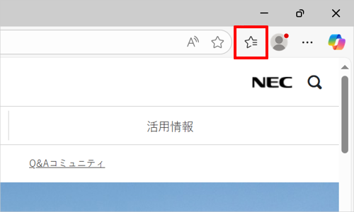 Microsoft Edgeを起動し、「」(お気に入り)をクリックします。