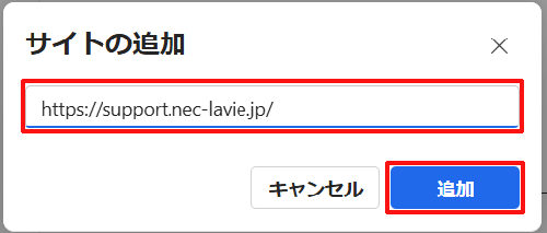 ボックスにWebページのURLを直接入力して、「追加」をクリックします。