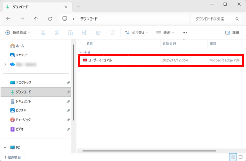 Webページからダウンロードしたファイルが保存されていることを確認します。