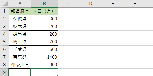 ここでは例として、以下の表を基に3Dマップを作成します。
