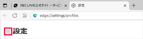 項目が表示されていない場合は、設定の左側にある「」(設定メニュー)をクリックしてください。