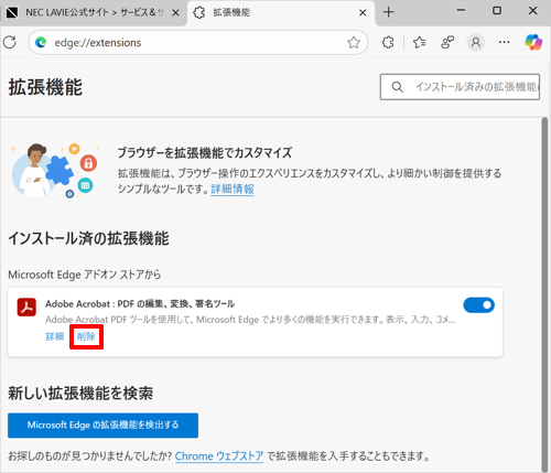 Windows 11のMicrosoft Edgeで拡張機能(アドオン)をアンインストールする方法