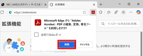 「Microsoft Edgeから(拡張機能名)を削除しますか?」が表示されます。