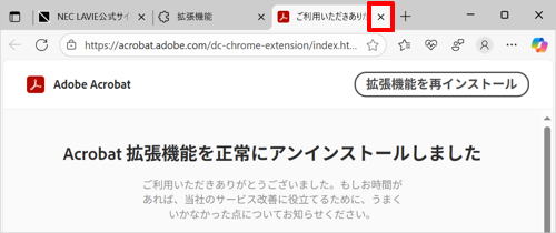 拡張機能のアンインストールが完了したら、「×」(タブを閉じる)をクリックして画面を閉じます。