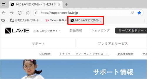 お気に入りバーが表示されていない場合は、以下の情報を参照してください。