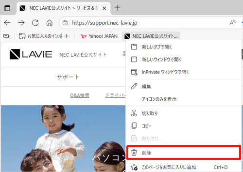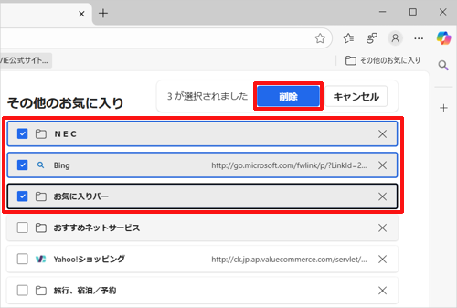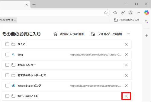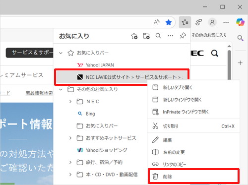 Windows 11のMicrosoft Edgeでお気に入りに追加したWebページを削除する方法