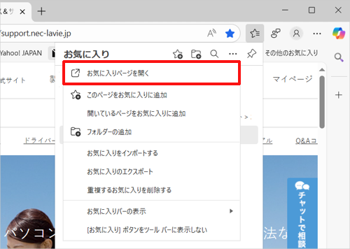 「お気に入りページを開く」をクリックします。