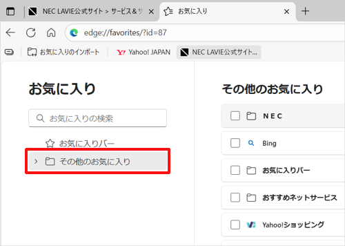 ここでは例として、「その他のお気に入り」をクリックします。