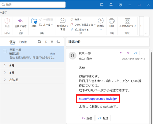 メールに記載されているURLリンク(一例)