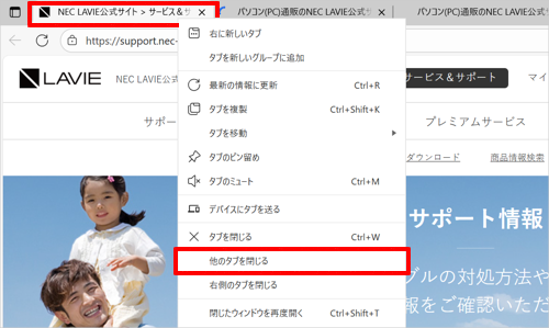 Windows 11のMicrosoft Edgeで1つのタブを残してほかのタブをすべて閉じる方法