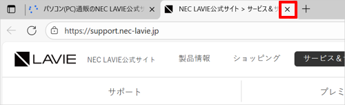 任意のタブの「×」(タブを閉じる)をクリックして、タブを閉じます。