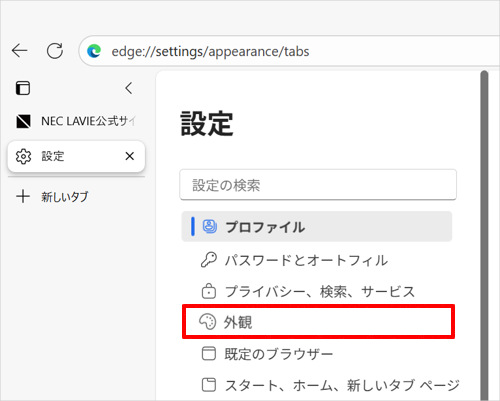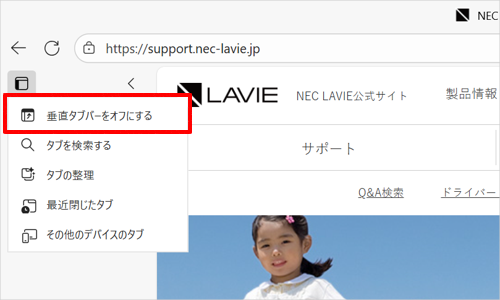 Windows 11のMicrosoft Edgeでタブバーが左側に表示された場合の対処方法
