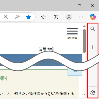 これは、Microsoft Edgeのサイドバーという機能で、アイコンをクリックすると、関連付けられたWebページやアプリを素早く開くことができます。