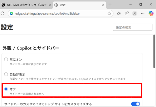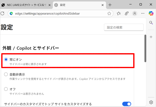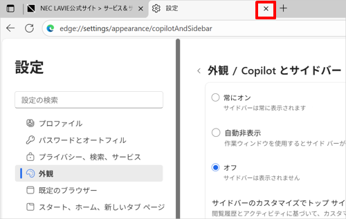 Windows 11のMicrosoft Edgeでサイドバーの表示/非表示を設定する方法