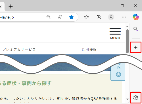 画面右上に「+」(カスタマイズ)が表示されている場合は、右下の「」(設定)をクリックしたら、「サイドバーの表示」の画面に移ります。
