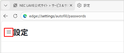 項目が表示されていない場合は、設定の左側にある「」(設定メニュー)をクリックしてください。