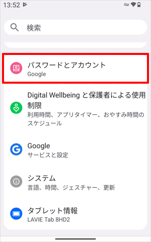 LAVIE Tab T8(2023年05月発表機種)ですでに持っているGoogleアカウントを使用する方法
