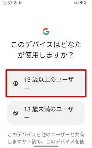 ここでは例として、「13歳以上のユーザー」をタップします。