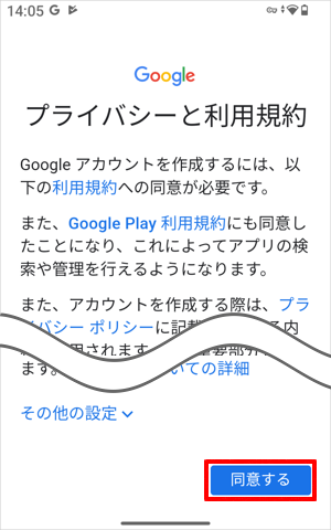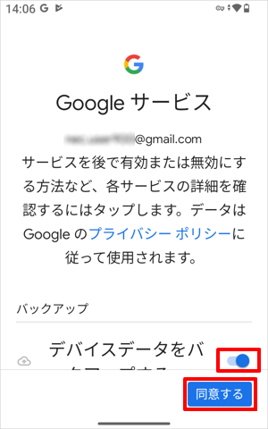 「Googleサービス」が表示されたら、項目の内容を確認し「同意する」をタップします。