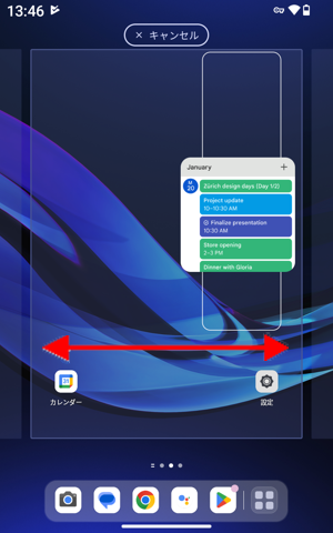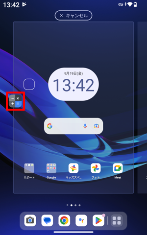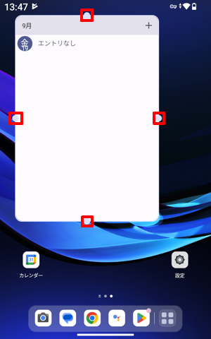 ※ サイズを変更するには、長押ししたあとウィジェットの上下左右に表示される「○」をドラッグして調整します。