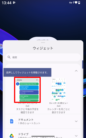 • 追加したウィジェットは、長押しして配置やサイズを変更できます。