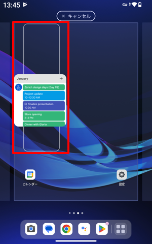 • ウィジェットの大きさによっては、「このホーム画面に空きスペースがありません」というようなメッセージが表示され、配置できない場合があります。