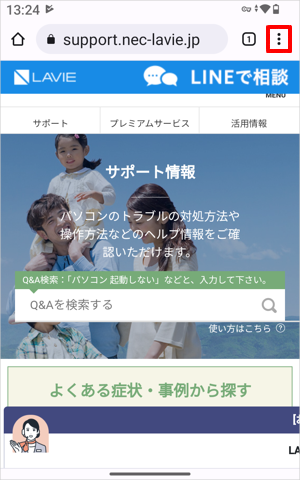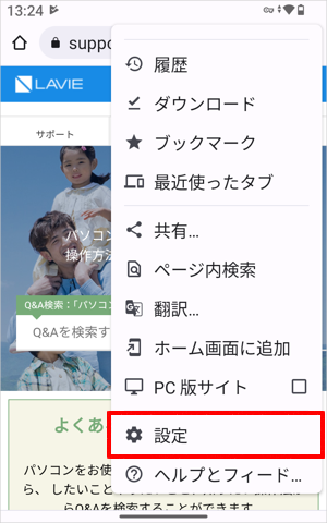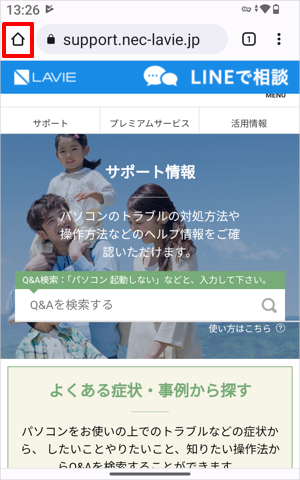 Q&A検索 製品 LAVIE Android LAVIE Tab T LAVIE Tab T8(2023年05月発表機種)でブラウザーにトップページ(最初に表示するページ)を設定する方法