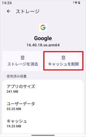 Googleアプリのキャッシュを削除するには、以下の操作手順を行ってください。