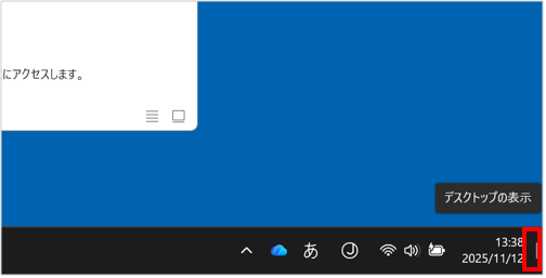デスクトップの右下隅(デスクトップの表示)をクリックします。