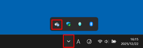 OneDrive」(OneDrive)が表示されていない場合は、タスクバーの通知領域の「隠れているインジケーターを表示します」(隠れているインジケーターを表示します)をクリックすると「OneDrive」が表示されます。