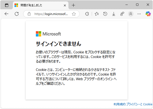 Microsoft Edgeの設定でCookieが無効になっている場合、Webページが正常に表示されないことがあります。