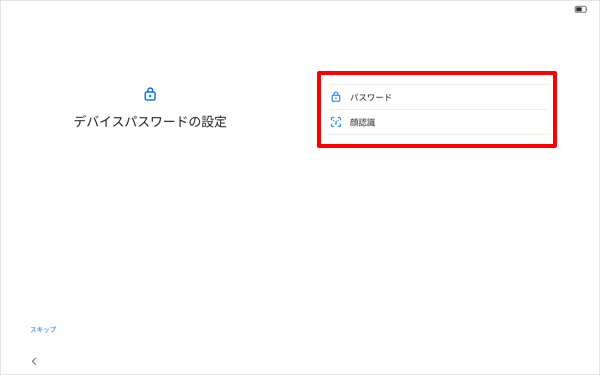 「デバイスパスワードの設定」が表示されたら、任意の設定方法をタップします。