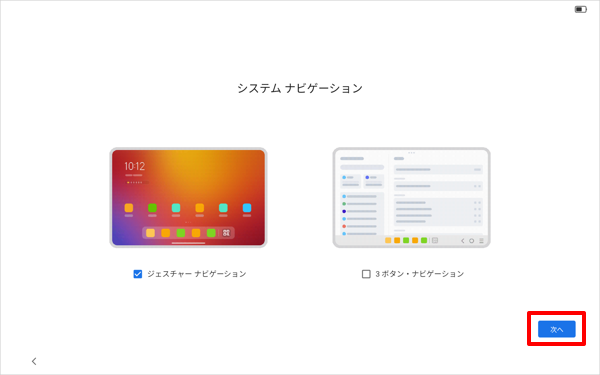 「システムナビゲーション」が表示されたら、「次へ」をタップします。