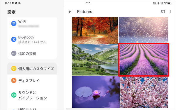 「Pictures」が表示されたら、設定したい画像をタップします。