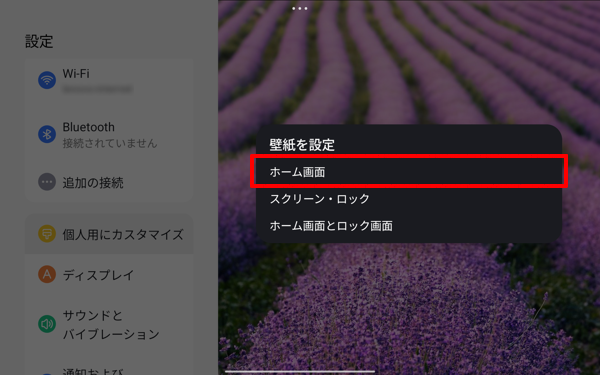 LAVIE Tab T11(2025年02月発表機種)でホーム画面の壁紙を設定するには、以下の操作手順を行ってください。