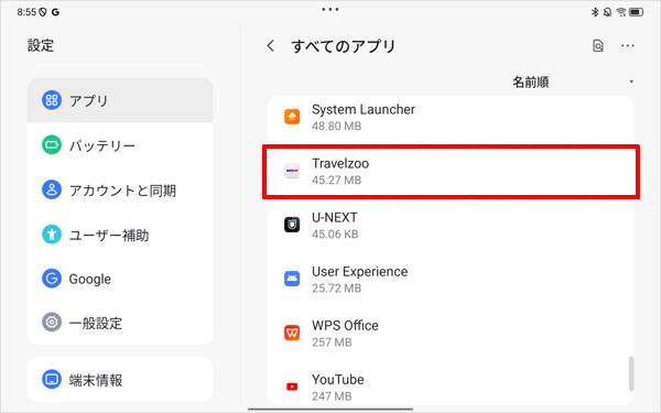 アプリの一覧からアンインストールしたいアプリをタップします。