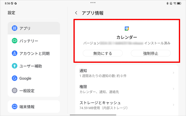 アンインストールできないアプリやウィジェットは、「無効にする」と表示され、「アンインストール」が表示されません。
