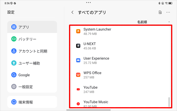 6. 「すべてのアプリ」画面に戻ったら、アンインストールしたアプリが消えていることを確認します。