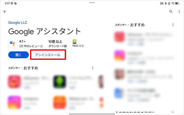 ※ タブレットの購入時からインストールされているアプリやウィジェットには、アンインストールできないものもあります。