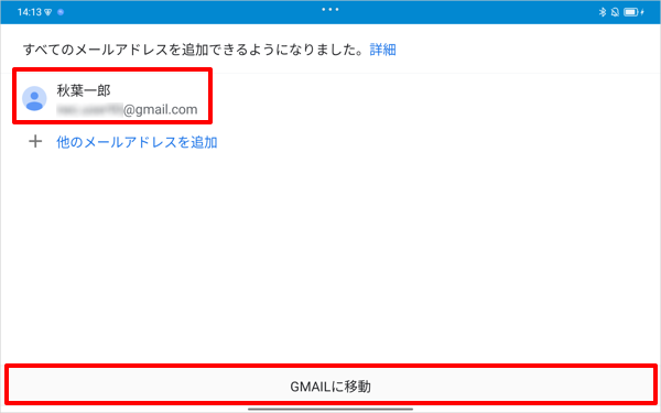 画面に表示されているGmailを使用する場合は、「GMAILに移動」をタップします。