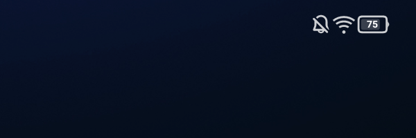 画面右上のステータスエリアから、バッテリアイコンでバッテリ残量を確認できます。
