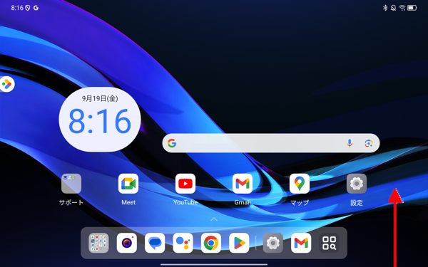 ホーム画面を開き、画面下部から上にゆっくりとスワイプします。
