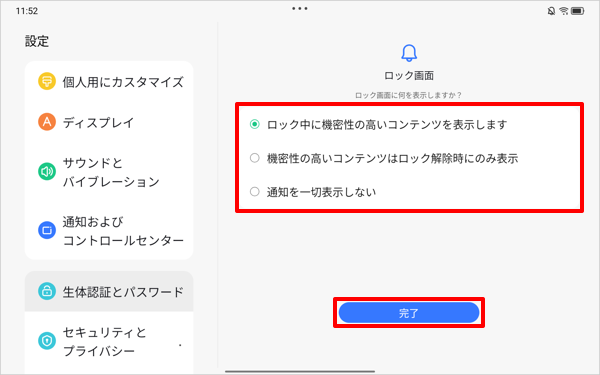 画面ロックを設定すると、プライバシーを保護し、第三者によるタブレットの不正使用を防げます。