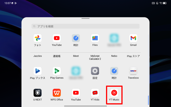 LAVIE Tab T11(2025年02月発表機種)のYouTube Musicアプリで音楽を再生するには、以下の操作手順を行ってください。