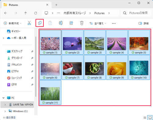 すべてのファイルを選択し、コマンドバーから「」(コピー)をクリックします。
